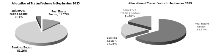 Overall, trading activity grew thinner in September 2025 as evidenced by the drop in the turnover ratio (being the number of shares traded divided by total listed shares) to 0.11%, down from 0.14% a month earlier. Conversely, the turnover ratio increased to 0.73% as at the end of the third quarter of this year, compared to 0.42% in the same period last year, reflecting a more dynamic trading stance.