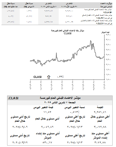 واصلت حركة التداول على بورصة بيروت تراجعها في الأسبوع المنتهي في 7 تشرين الثاني حيث إنخفض عدد الأسهُم المتداوَلة إلى 111،131 سهم، مقارنةً ب111،914 سهم في الأسبوع الذي سبقه كما وتدنّت قيمة الأسهم المتداولة إلى 4.07 مليون د.أ.، مقارنةً ب8.45 مليون د.أ. قبل أسبوع. وقد سَيطَرَت أسهُم القطاع المصرفي على الحصّة الأكبر من حجم التداول مشكّلةً نسبة 60.57% من مجموع عدد الأسهم المتداولة.