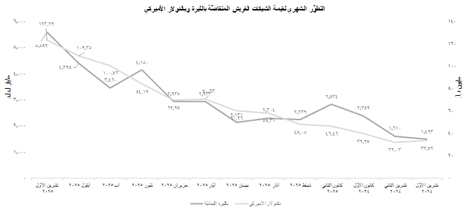 In a related note, the total number of returned checks (fresh and non-fresh) expressed as a percentage of the total number of cleared checks dropped to 0.46% in the first ten months of 2025, down from 0.58% a year earlier. In details, the number of LBP-denominated returned checks (fresh & non-fresh) calculated as a percentage of the number of LBP-denominated cleared checks dropped to 0.35% YTD October 2025 down from 0.40% a year earlier with that of USD-denominated ones (fresh & non-fresh) calculated as a percentage of total USD-denominated cleared checks dropping to 0.66% down from 1.47% YTD October 2024.