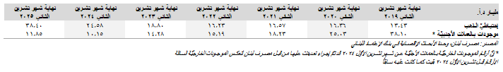 في سياقٍ متّصل، إنخفضت ميزانيّة مصرف لبنان بنسبة 0.32% في النصف الثاني من شهر تشرين الثاني إلى 8،445.84 ترليون ل.ل. بالتفاصيل، تراجعت فروقات تقييم الذهب والعملات الأجنبيّة بنسبة 0.77% إلى 1،648.20 ترليون ل.ل. تزامناً مع إنخفاض قيمة الموجودات الخارجيّة بالعملة الأجنبيّة بنسبة 1.08% وتدنّي إحتياطي الذهب ب0.17% ما أطاح بإرتفاع رصيد عمليّات السوق المفتوحة المؤجّلة بنسبة 1.25% إلى 192.26 ترليون ل.ل. وزيادة قيمة الموجودات الأخرى المختلفة بنسبة 2.11% إلى 32.52 ترليون ل.ل.