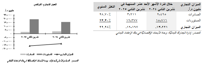 زاد عجز الميزان التجاري اللبناني ب2.95 مليار د.أ. (22.28%) على صعيدٍ سنويٍّ خلال الأشهر الإحدى عشر الأولى من العام 2025 إلى حوالي 16.17 مليار د.أ. كما في نهاية شهر تشرين الثاني، مقارنةً بعجز بلغ 13.22 مليار د.أ. في الفترة الموازية من العام 2024، وذلك بحسب إحصاءات إدارة الجمارك اللبنانيّة. يعود هذا الإرتفاع في العجز إلى زيادة فاتورة الإستيراد بمبلغ قدره 3.66 مليار د.أ. (23.30%) إلى حوالي 19.38 مليار د.أ. وهو ما طغى على زيادة قيمة الصادرات بنحو 716.04 مليون د.أ. (28.70%) إلى 3.21 مليار د.أ.