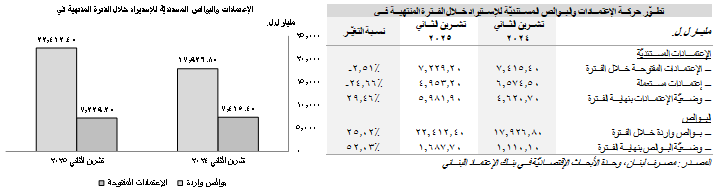 على صعيد حركة الإستيراد إلى لبنان، بلغت قيمة الإعتمادات المستنديّة المفتوحة للإستيراد 7،229.20 مليار ل.ل. (80.77 مليون د.أ.) مع نهاية شهر تشرين الثاني 2025، مقابِل 7،415.40 مليار ل.ل. في الفترة ذاتها من العام 2024. في سياقٍ آخر، إنخفضت قيمة الإعتمادات المستعمَلة للإستيراد إلى 4،953.20 مليار ل.ل. (55.34 مليون د.أ.)، كما ووصلت البوالص الواردة إلى 22،412.40 مليار ل.ل. (250.42 مليون د.أ.)، من 17،926.80 مليار ل.ل. حتّى شهر تشرين الثاني 2024.