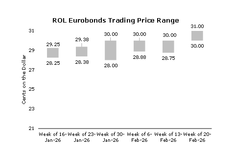 The Lebanese Eurobond market witnessed a significant bullish breakout this week. While sovereign papers began the week consolidating around the 29.00 – 30.00 cents on the dollar, they gained strong upward momentum following a series of optimistic and positive remarks regarding Lebanon. The market's reaction was swift with prices hitting the 30.00 – 31.00 cents to the dollar range by the end of the week. Markets were liquid this week with a higher buying appetite from international institutional investors versus a selling activity from locals.
