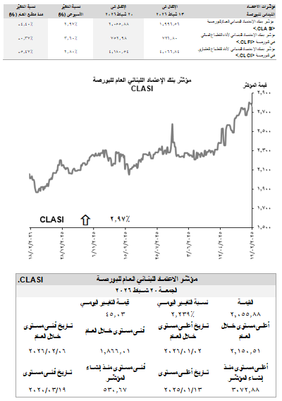 من جهةٍ أخرى، إرتفعت الرسملة السوقيّة (Market Capitalization) لبورصة بيروت بنسبة 2.87% على صعيد أسبوعي إلى حوالي 18.87 مليار د.أ.، وذلك في ظلّ التحسّن في أسعار خمسة أسهم وغياب أيّ تراجع في أسعار أسهم آخرى. في هذا الإطار، أنهى مؤشِّر بنك الإعتماد اللبناني للبورصة (“CLASI”) أسبوعه على إرتفاع بنسبة 2.97% عن إقفال الأسبوع السابق ليصل إلى 2،055.88.