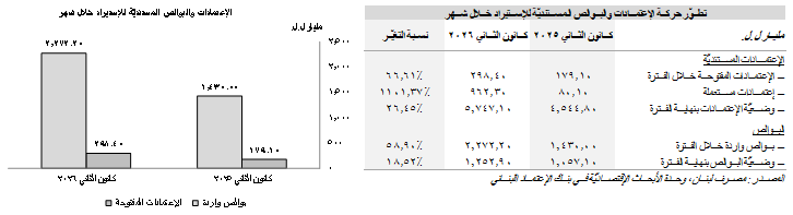 على صعيد حركة الإستيراد إلى لبنان، بلغت قيمة الإعتمادات المستنديّة المفتوحة للإستيراد 298.40 مليار ل.ل. (3.33 مليون د.أ.) في الشهر الأوّل من العام 2026، مقابِل 179.10 مليار ل.ل. في الشهر ذاته من العام 2025. في سياقٍ آخر، إرتفعت قيمة الإعتمادات المستعمَلة للإستيراد إلى 962.30 مليار ل.ل. (10.75 مليون د.أ.)، كما ووصلت البوالص الواردة إلى 2،272.20 مليار ل.ل. (25.39 مليون د.أ.)، من 1،430.00 مليار ل.ل. في الشهر الأوّل من العام 2025.